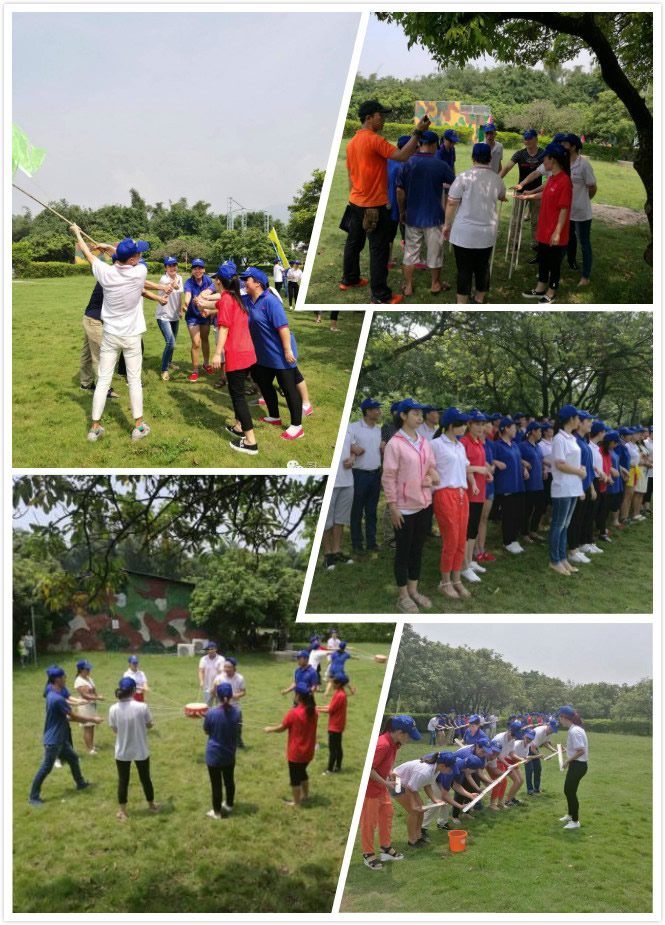 第二天,大家統(tǒng)一穿著廠服,戴著帽子,精神高漲地來(lái)到了紅旗寨拓展基地。初聽(tīng)到拓展,我內(nèi)心是期待與害怕交織的,原因嘛,軍訓(xùn)的陰影還在心中。我們?cè)诮叹毜慕M織下,迅速站隊(duì),建隊(duì),起隊(duì)名,喊口號(hào)。似乎又回到了那年軍訓(xùn)的日子,只是此刻并不排斥和害怕了。我們依數(shù)字被分為4隊(duì),隊(duì)旗在風(fēng)中飄揚(yáng),激情在烈日中燃燒。四隊(duì)依次比賽,最后一名要接受“俯臥撐”和“抱蹲”懲罰。幾分鐘的練習(xí)后,隨著教練一聲號(hào)角,第一個(gè)“不倒森林”項(xiàng)目比賽開(kāi)始了,團(tuán)隊(duì)圍成一個(gè)圈,每個(gè)成員拿一個(gè)棍子,用指心抓緊自己的棍子,隨著隊(duì)長(zhǎng)的口號(hào),松開(kāi)自己的棍子,去抓前一位的棍子,全數(shù)。我原本以為這個(gè)游戲很簡(jiǎn)單,沒(méi)想到,訓(xùn)練過(guò)程不盡人意,隨之出現(xiàn)質(zhì)疑埋怨的聲音,結(jié)果也不意外地接受了懲罰。完成后,教官總結(jié)道要在松開(kāi)自己棍子的同時(shí),為后面接你棍子的人考慮,有問(wèn)題不要互相埋怨指責(zé)。是啊,在工作中,出現(xiàn)問(wèn)題在所難免,指責(zé)埋怨對(duì)解決問(wèn)題毫無(wú)幫助,大家在做好自己工作的同時(shí),也要鼓勵(lì)幫助別人。緊接著是再接再厲,團(tuán)隊(duì)成員從起點(diǎn)接力用竹子把球齊心協(xié)力運(yùn)到桶里面,耗時(shí)最少者勝。吸取了上一個(gè)項(xiàng)目的經(jīng)驗(yàn)教訓(xùn),我們這次互相鼓勵(lì)打氣,訓(xùn)練過(guò)程中很快完成任務(wù)。團(tuán)隊(duì)士氣高漲,在正式比賽中,結(jié)果卻不是那么理想。我想這次是輸在心態(tài)吧,訓(xùn)練的時(shí)候,沒(méi)有那么急躁,比賽的時(shí)候,急于求成,人的速度跟不上球的速度。最后一個(gè)是擊鼓顛球,這個(gè)項(xiàng)目讓我尤其感動(dòng)。在規(guī)定時(shí)間內(nèi),順利接球最多者勝。各隊(duì)用自己的方法來(lái)進(jìn)行,在每隊(duì)做任務(wù)期間,其他隊(duì)在一旁觀看。到了我們隊(duì)做任務(wù)的時(shí)候,幾乎每一次都是到同樣的數(shù)字,球就落地了,我們爭(zhēng)分奪秒繼續(xù)。這時(shí)候,旁觀伙伴們的加油聲傳來(lái),此時(shí),沒(méi)有了比賽,似乎是家人在為自己與更高自己的超越而吶喊助威。